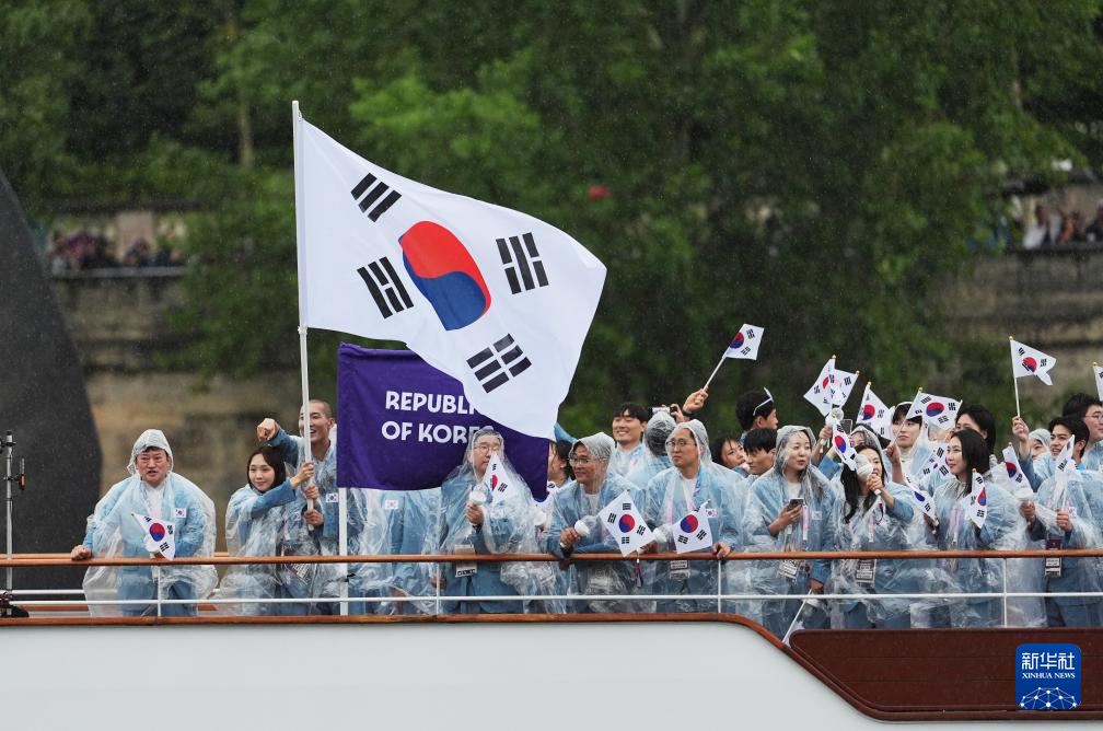 7月26日,韓國(guó)體育代表團(tuán)在開幕式上。新華社記者 江文耀 攝