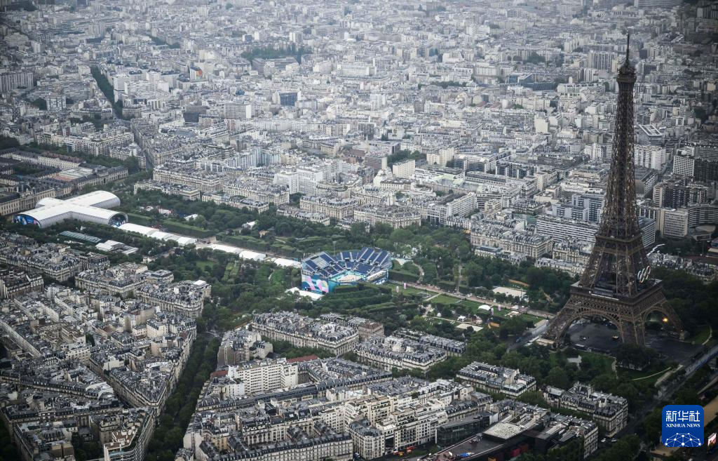俯瞰開幕式上的埃菲爾鐵塔和戰(zhàn)神廣場(chǎng)(7月26日攝)。新華社發(fā)(POOL照片/利昂內(nèi)爾·博納旺蒂爾)