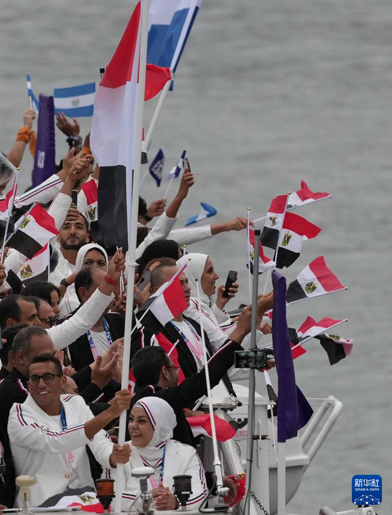 7月26日,埃及體育代表團(tuán)成員在開幕式上慶祝。新華社記者 李明 攝