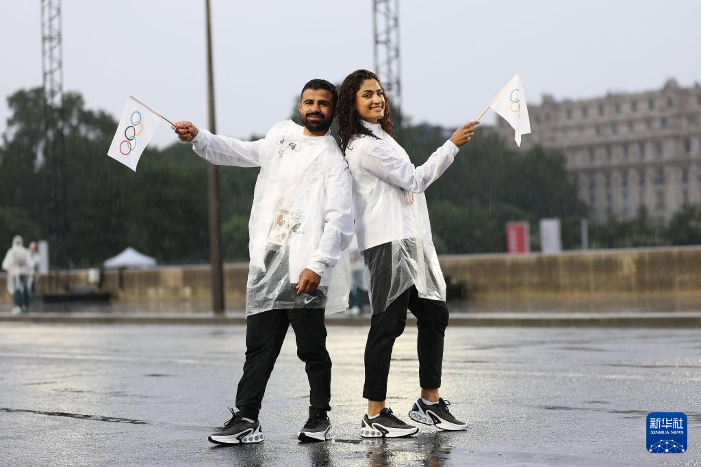 7月26日,難民體育代表團(tuán)成員在開幕式上。新華社記者 李明 攝