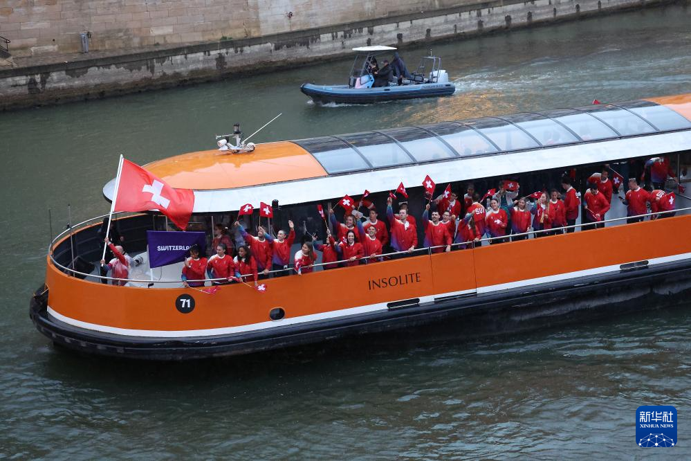 7月26日,瑞士體育代表團(tuán)在開幕式上。新華社記者 趙丁喆 攝