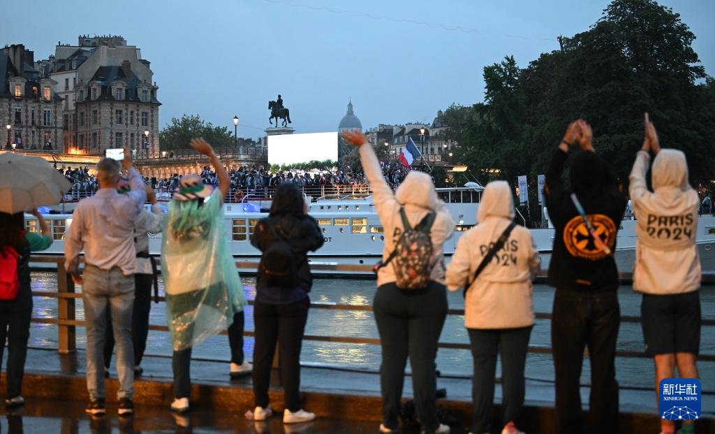 7月26日,觀眾在塞納河邊觀看開幕式。新華社記者 任正來(lái) 攝