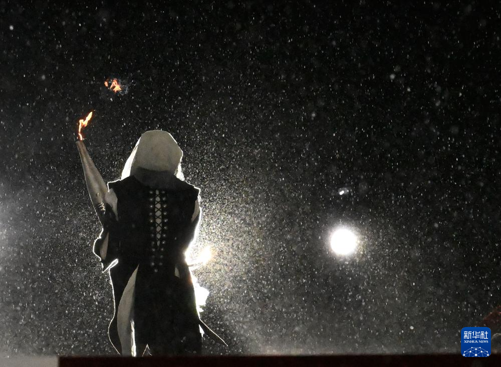 7月26日,一名演員手持火炬在開幕式現(xiàn)場(chǎng)表演。新華社記者 李安 攝