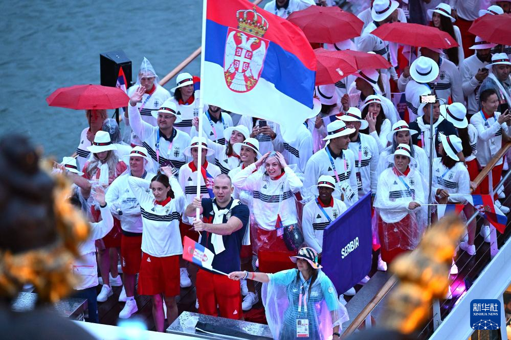 7月26日,塞爾維亞體育代表團(tuán)成員在開幕式上。新華社記者 張宏祥 攝