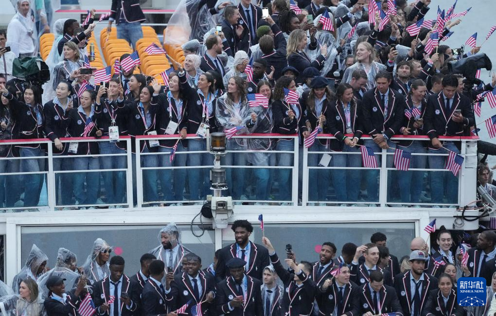 7月26日,美國(guó)體育代表團(tuán)在開幕式上。新華社記者 趙丁喆 攝