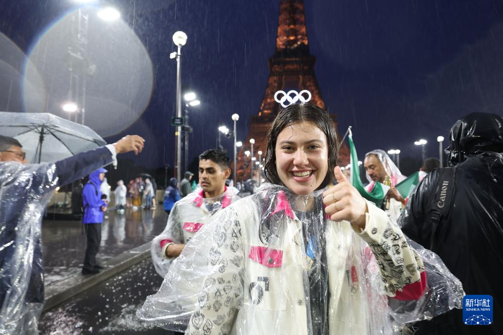 7月26日,墨西哥體育代表團(tuán)成員在埃菲爾鐵塔前。新華社記者 李明 攝