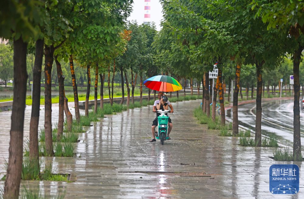 7月28日,在遼寧省沈陽市和平區(qū),市民在雨中出行?! ⌒氯A社記者 楊青 攝