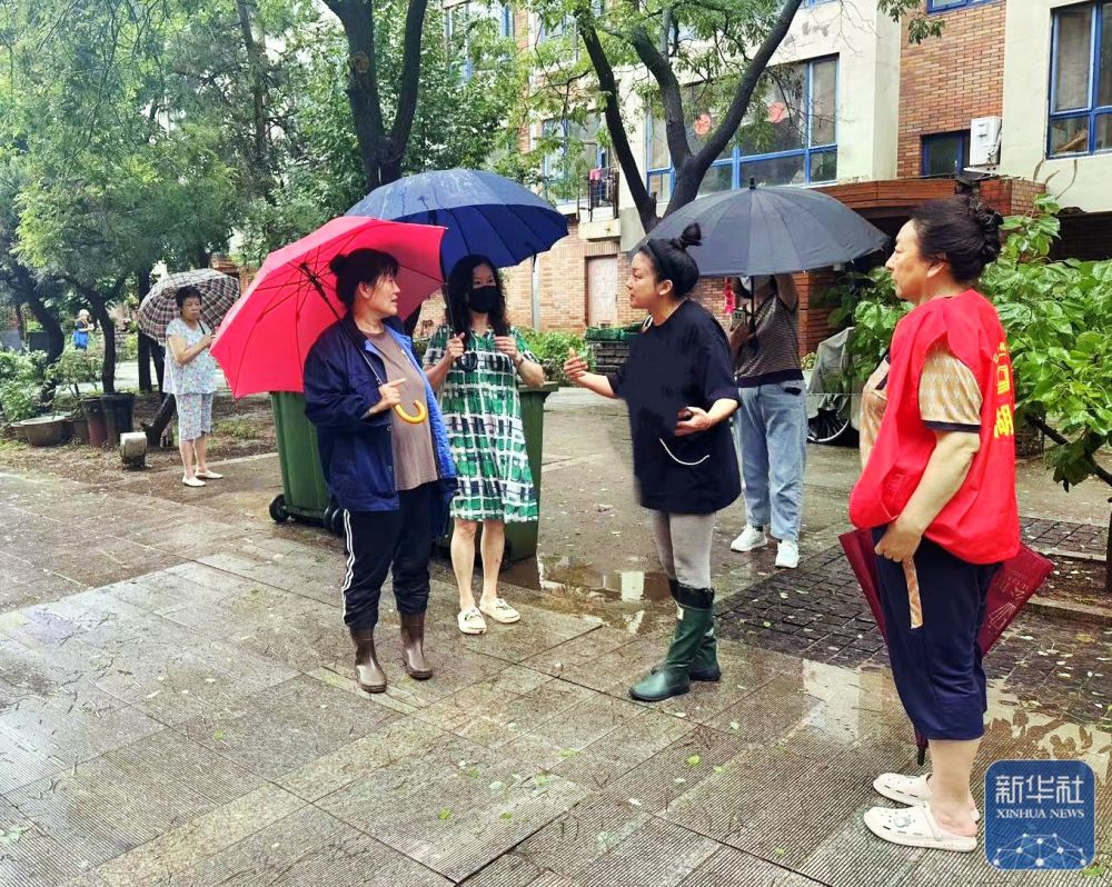 7月27日,營(yíng)口市站前區(qū)建豐街道工作人員叮囑居民注意安全?! ⌒氯A社發(fā)