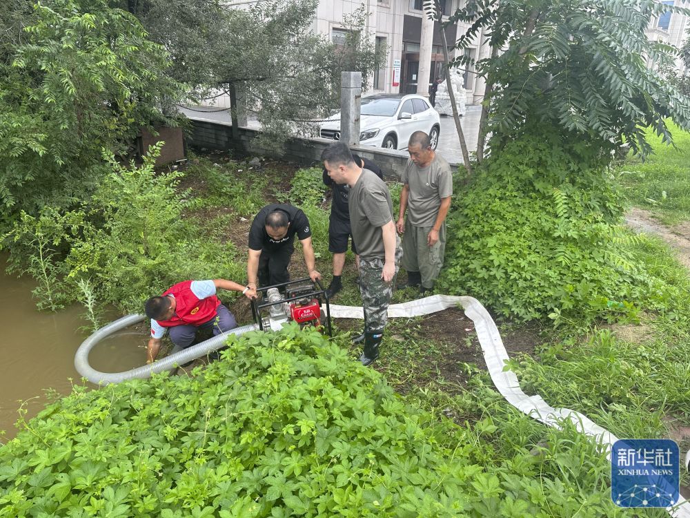 7月28日,鐵嶺市昌圖縣昌圖鎮(zhèn)八家子村組織黨員干部來到低洼耕地進(jìn)行排水,減少農(nóng)田內(nèi)澇。 新華社發(fā)