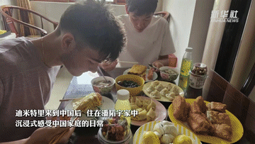 今年暑假剛開(kāi)始,迪米特里就迫不及待地隨團(tuán)來(lái)到中國(guó),住在潘韜宇家中,沉浸式感受中國(guó)家庭的日常。從品嘗特色小吃、共同學(xué)做中國(guó)菜,到一起打籃球、打游戲,線下的深入接觸讓兩人的友誼進(jìn)一步升溫。