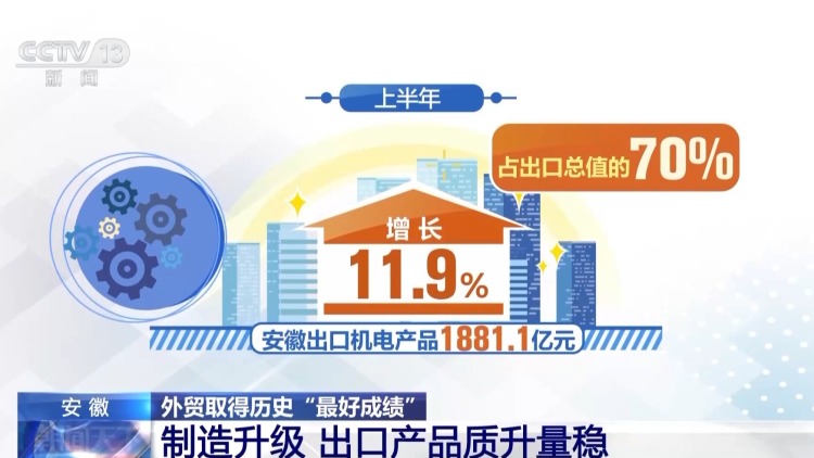 今年上半年,安徽的貨物貿(mào)易進(jìn)出口總值3967.8億元,同比增長7.4%,創(chuàng)下歷史同期最好水平。安徽外貿(mào)取得歷史“最好成績”,背后的動力是什么?