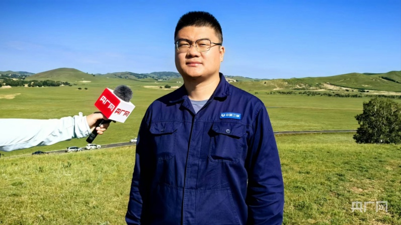 三峽集團(tuán)現(xiàn)場施工負(fù)責(zé)人閆青山接受采訪(央廣網(wǎng)見習(xí)記者 邵玉琴 攝)
