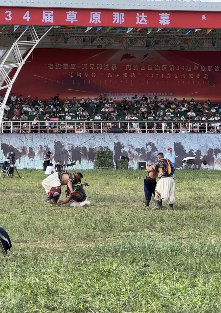 那達(dá)慕現(xiàn)場(chǎng)同時(shí)進(jìn)行多組搏克比賽