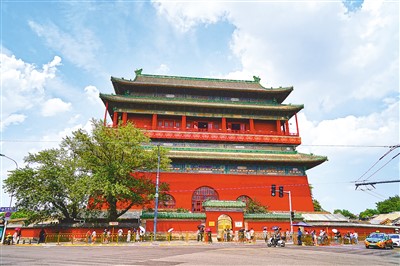 北京中軸線上的鼓樓?! ∷渭胰鍞z(人民視覺(jué))
