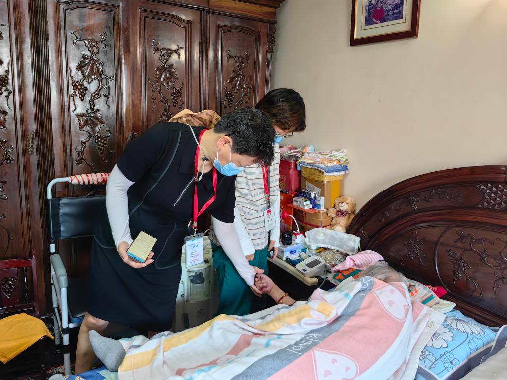 76歲的劉爺爺腦溢血后部分肢體偏癱,同時(shí)患有一些基礎(chǔ)性老年病?!耙葴y(cè)量老人生命體征是否平穩(wěn),再進(jìn)行助浴,其間也要隨時(shí)關(guān)注老人的狀態(tài)。”他說。