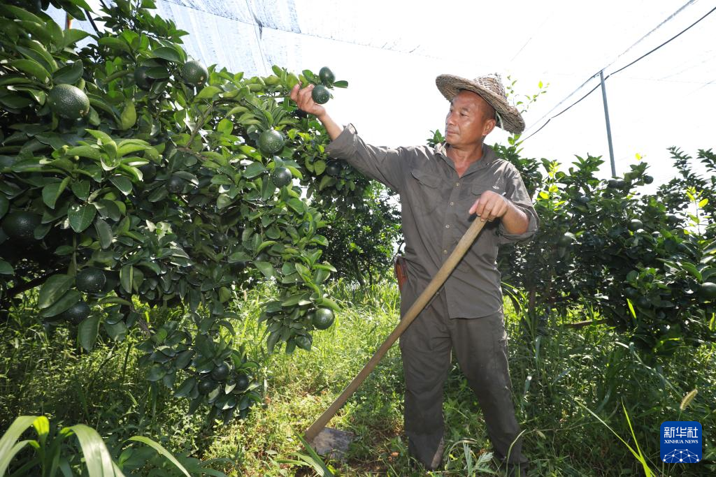 8月12日,福建南平市延平區(qū)爐下鎮(zhèn)斜溪村村民王崇年在護(hù)理果園。 新華社記者 姜克紅 攝