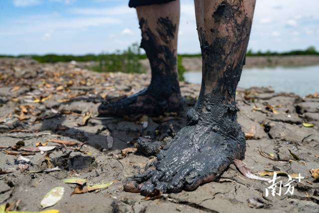 黑泥爬滿(mǎn)了楊健宏的小腿。
