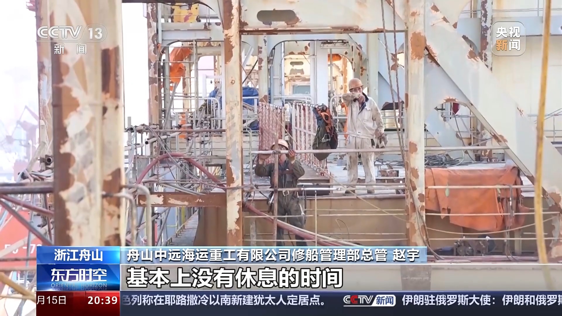 舟山中遠(yuǎn)海運重工有限公司修船管理部總管 趙宇:到目前為止,我個人負(fù)責(zé)的船只,走一條來一條,基本上沒有休息的時間。對公司來說業(yè)務(wù)增加了、效益好了,那對我們個人來說,個人的錢包就鼓了。