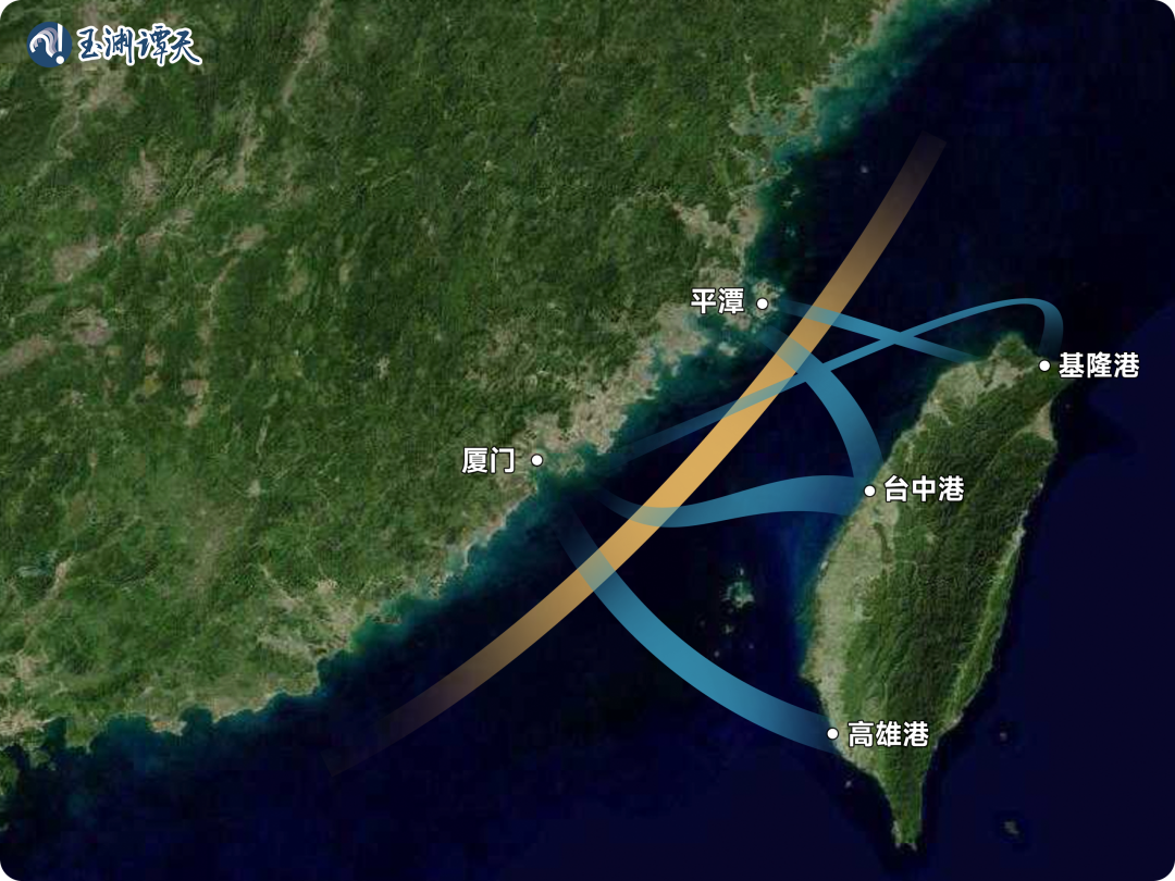 從圖上可以看到,要到達(dá)臺灣島西岸,大多數(shù)船只都需要穿過臺灣海峽中部海域。