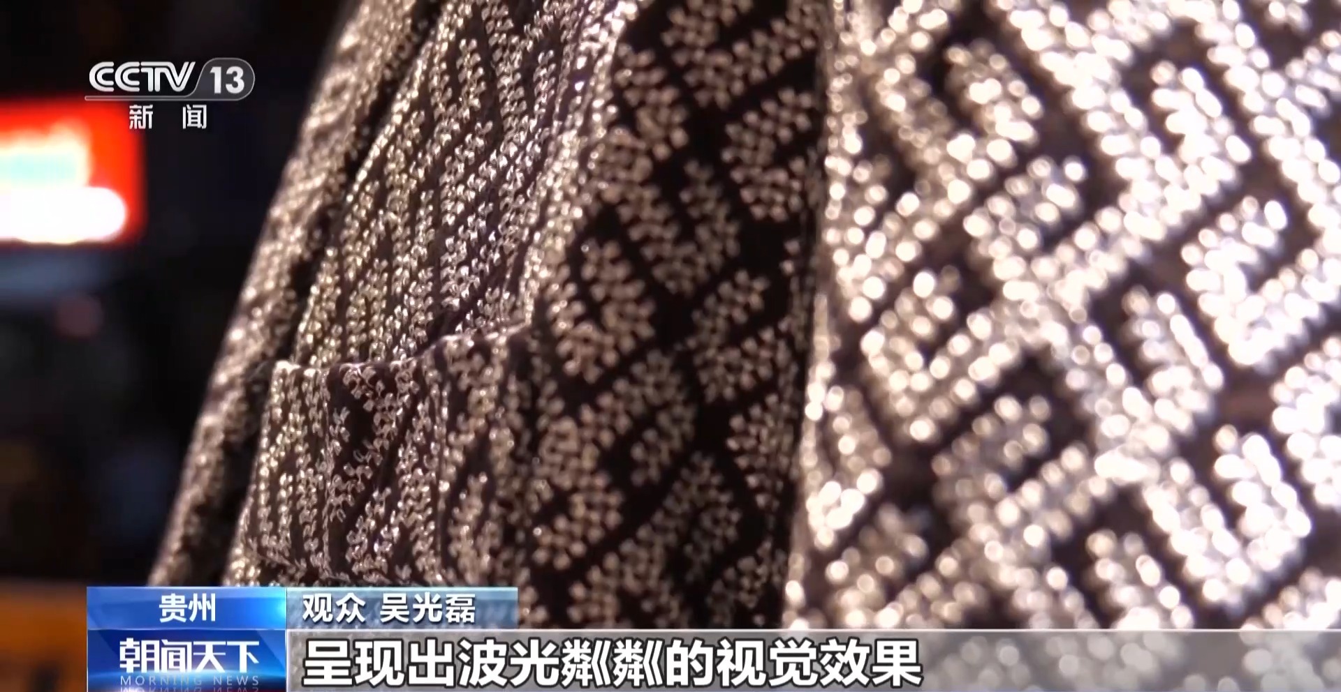 苗族錫繡非遺傳承人 王亨石:按照他要尺寸的大小自己繡出來,繡出來以后寄給他,他自己再設(shè)計(jì)出作品,參展,走向國際時(shí)裝周。我想生在大山里面幾百年的錫繡,今天能走上這么高的國際舞臺(tái),我真的感到很高興而且很自豪。