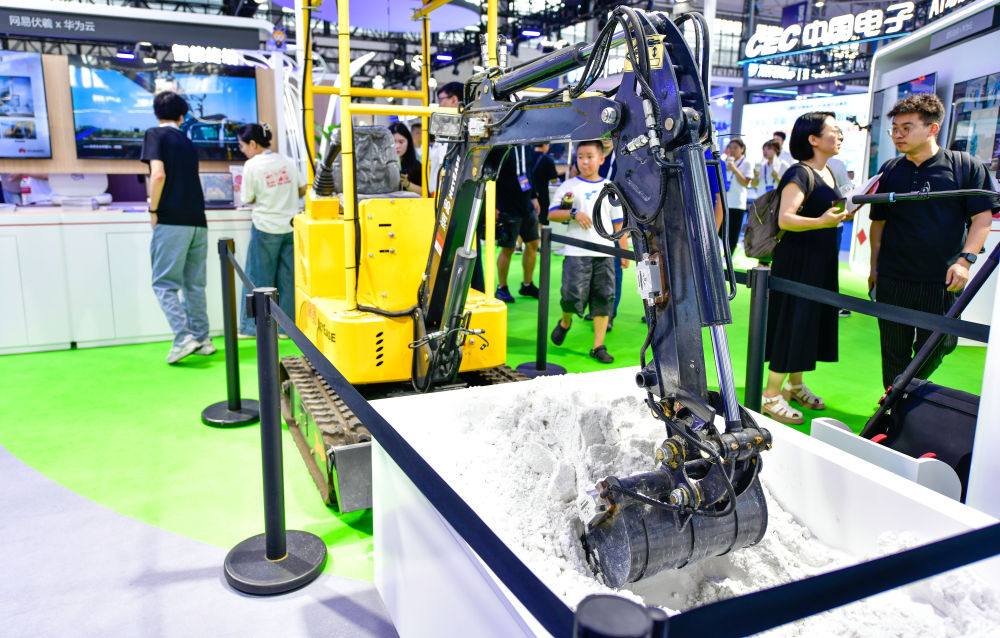 8月28日拍攝的在數(shù)博會上展出的一款智能機械設(shè)備。