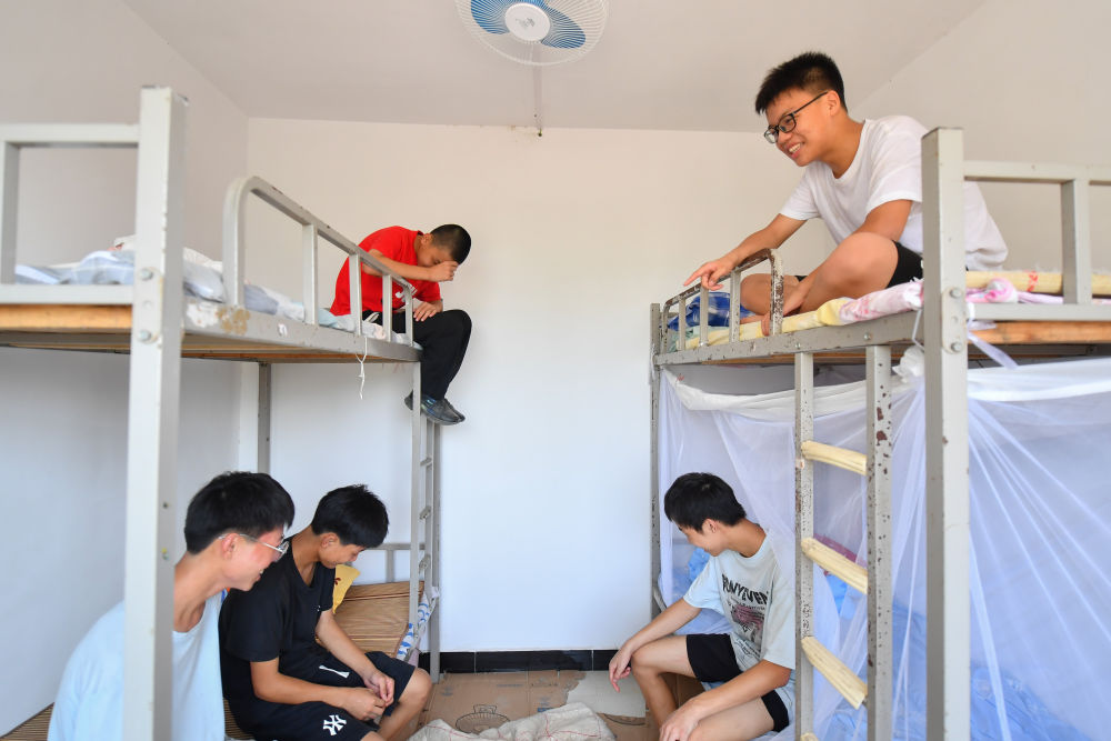 9月1日,在湖南華容縣團(tuán)洲學(xué)校,學(xué)生在宿舍聊天。新華社記者 陳澤國(guó) 攝