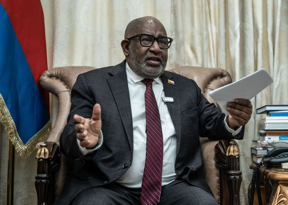 圖為8月29日,科摩羅總統(tǒng)阿扎利在位于科摩羅首都莫羅尼的總統(tǒng)府接受新華社記者專訪。(新華社記者王冠森攝)