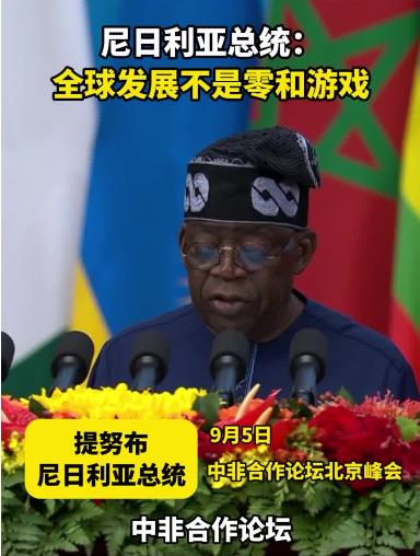 尼日利亞總統(tǒng)提努布5日在中非合作論壇北京峰會開幕式上說,中非合作論壇以及更廣泛的中非伙伴關(guān)系所取得的成功,表明一個重要真理:全球發(fā)展不是零和游戲。
