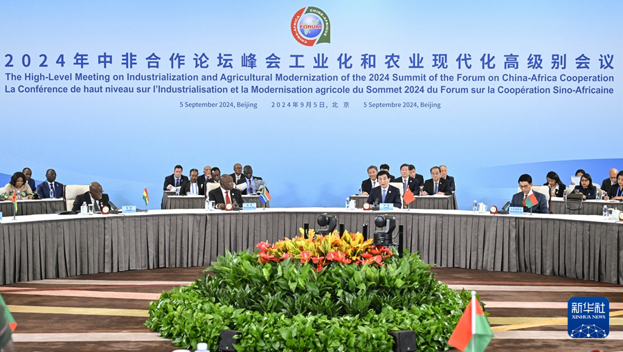 新華社北京9月5日電(記者謝?,?、潘潔)中非合作論壇北京峰會工業(yè)化和農業(yè)現(xiàn)代化高級別會議9月5日下午在國家會議中心舉行。中共中央政治局常委、全國政協(xié)主席王滬寧與南非總統(tǒng)拉馬福薩共同主持會議。