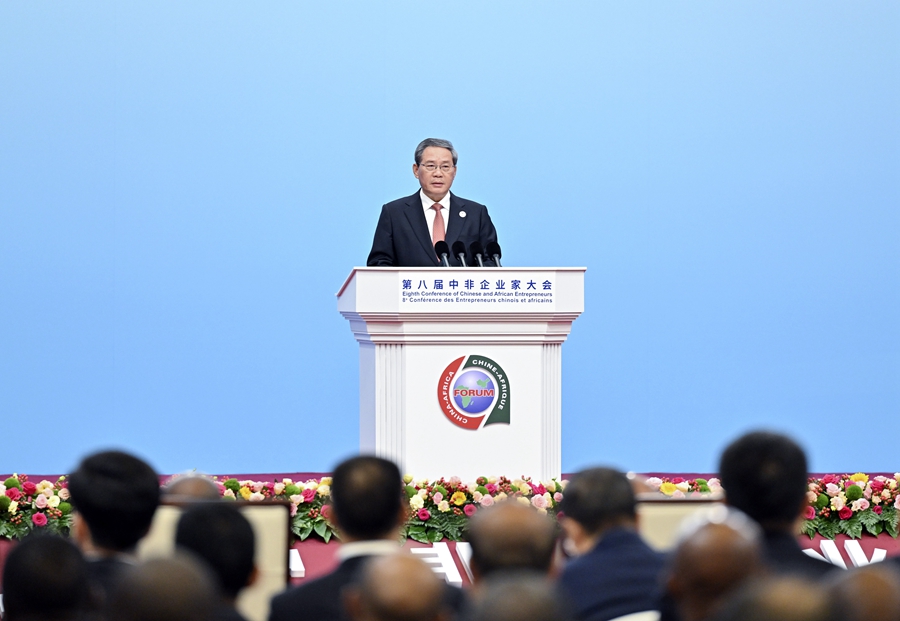 9月6日上午,國務(wù)院總理李強在北京國家會議中心出席第八屆中非企業(yè)家大會開幕式并致辭。新華社記者 殷博古 攝