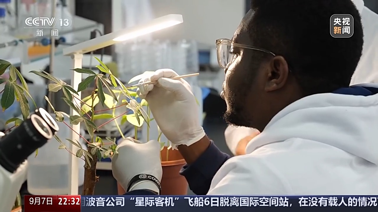 尼日利亞留學(xué)生 格雷戈里:我來中國的目的是培育抗蟲害的木薯品種。防治蟲害的費(fèi)用很高,如果我們能開發(fā)出綠色解決方案來幫助減少蟲害,那么控制蟲害的成本就會(huì)很低。這將促進(jìn)經(jīng)濟(jì)發(fā)展,使人們能夠擺脫貧困。
