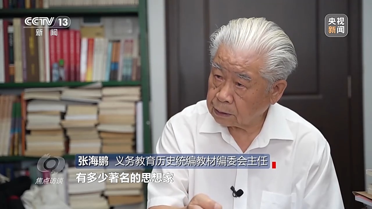 義務教育歷史統(tǒng)編教材編委會主任 張海鵬:講我們中國歷史上每一代有多少著名的思想家,有多少著名的政治家、軍事家、戰(zhàn)略家、科學家,對人類有貢獻的發(fā)明創(chuàng)造、文學藝術(shù)。這就是告訴我們,中華的文化是優(yōu)秀的,是值得我們熱愛的。