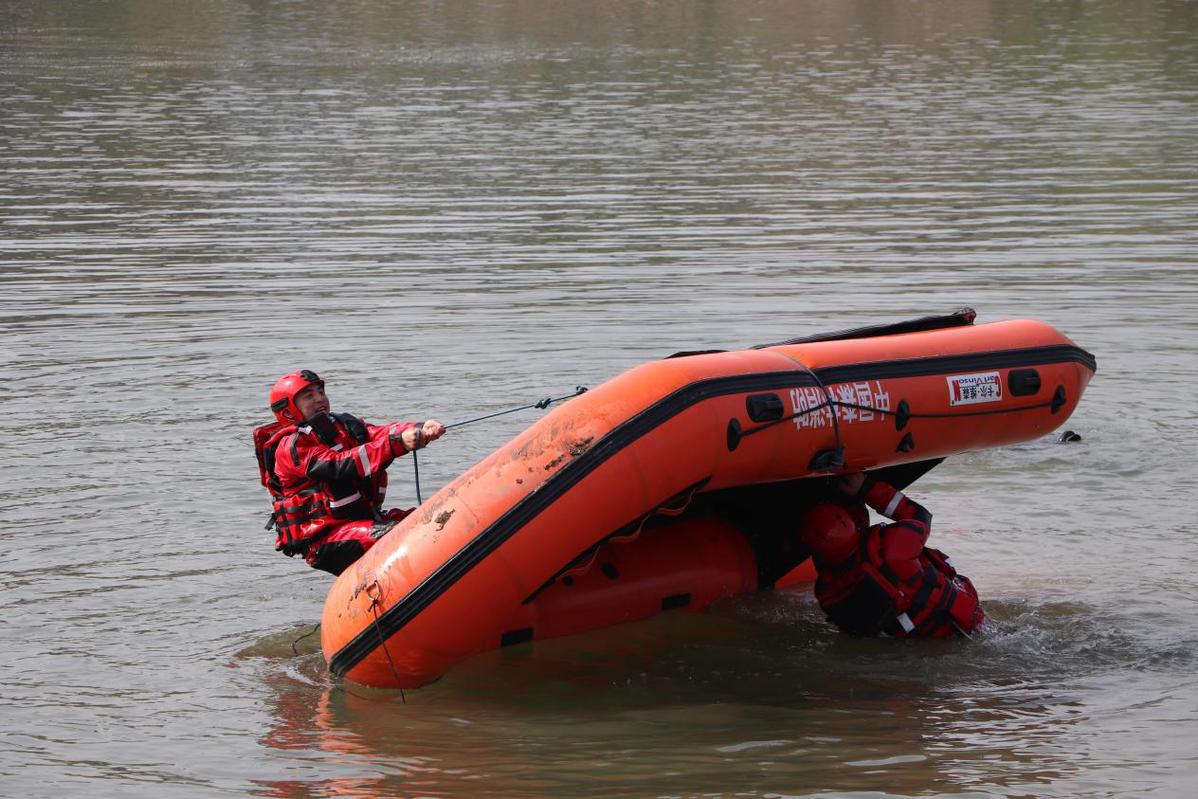 隊(duì)員正在進(jìn)行翻船自救訓(xùn)練