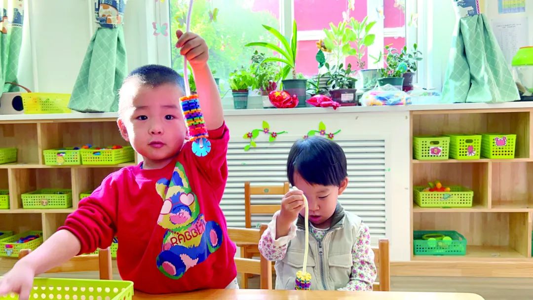 幼兒在托班跟著教師做游戲。