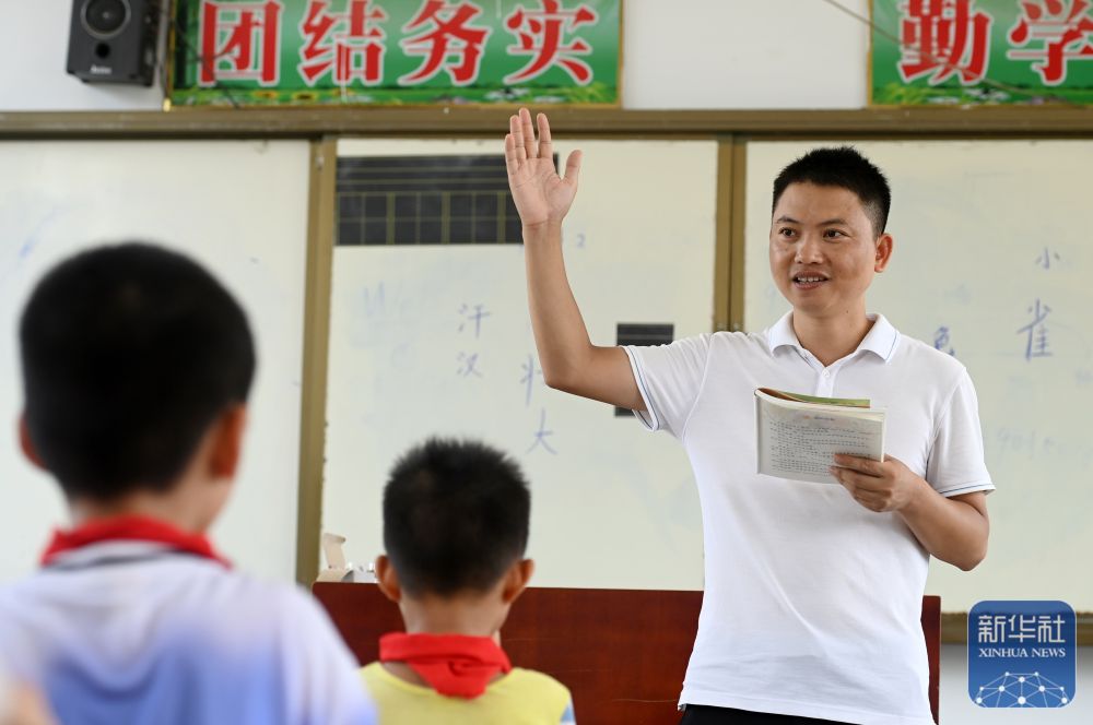 在廣西南寧市邕寧區(qū)中和鎮(zhèn)中心學(xué)校那才教學(xué)點,“85后”老師滕永社在給學(xué)生上課(9月5日攝)。
