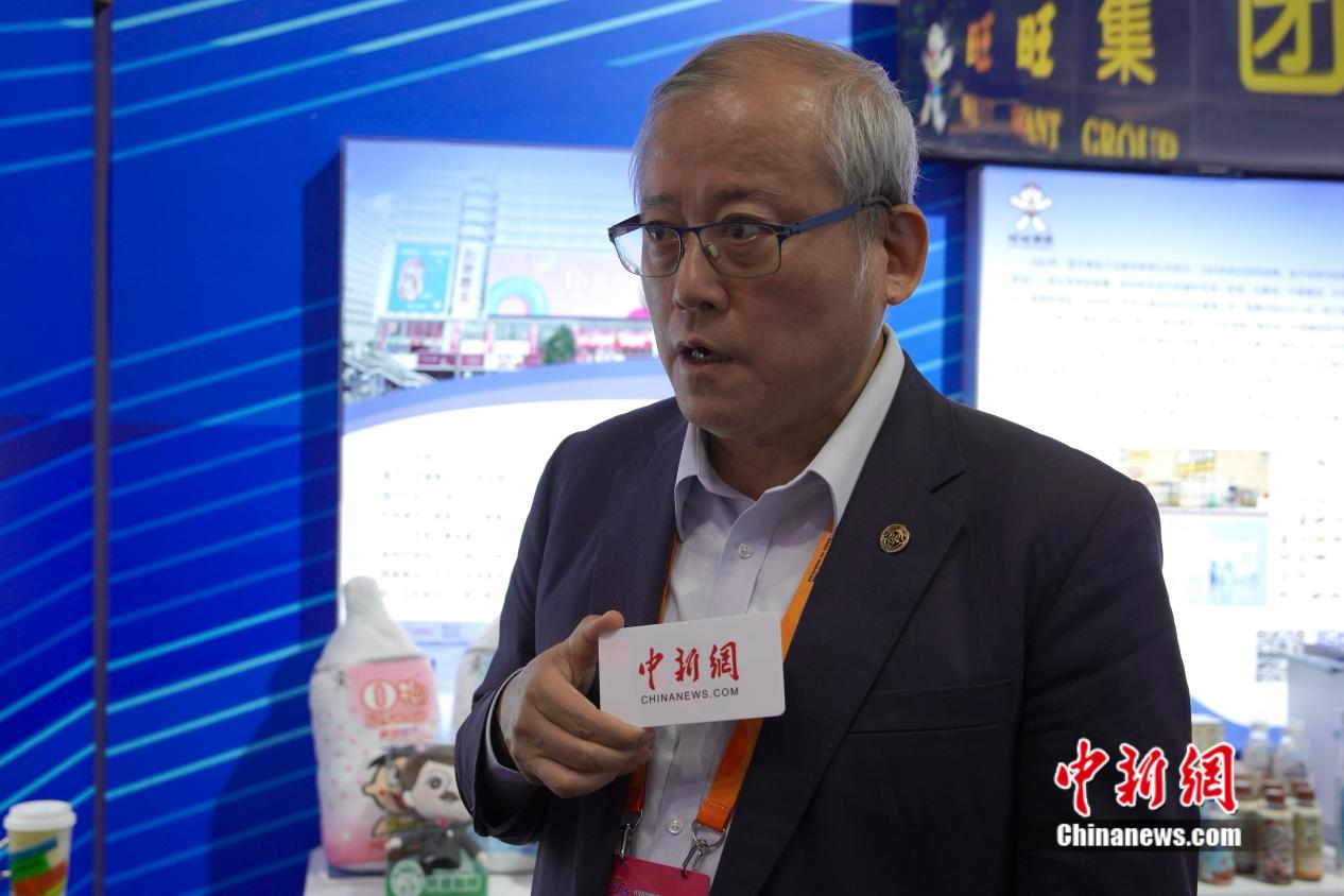 全國(guó)臺(tái)企聯(lián)常務(wù)副會(huì)長(zhǎng)、旺旺集團(tuán)首席代表林天良接受采訪。陳銀沙 攝