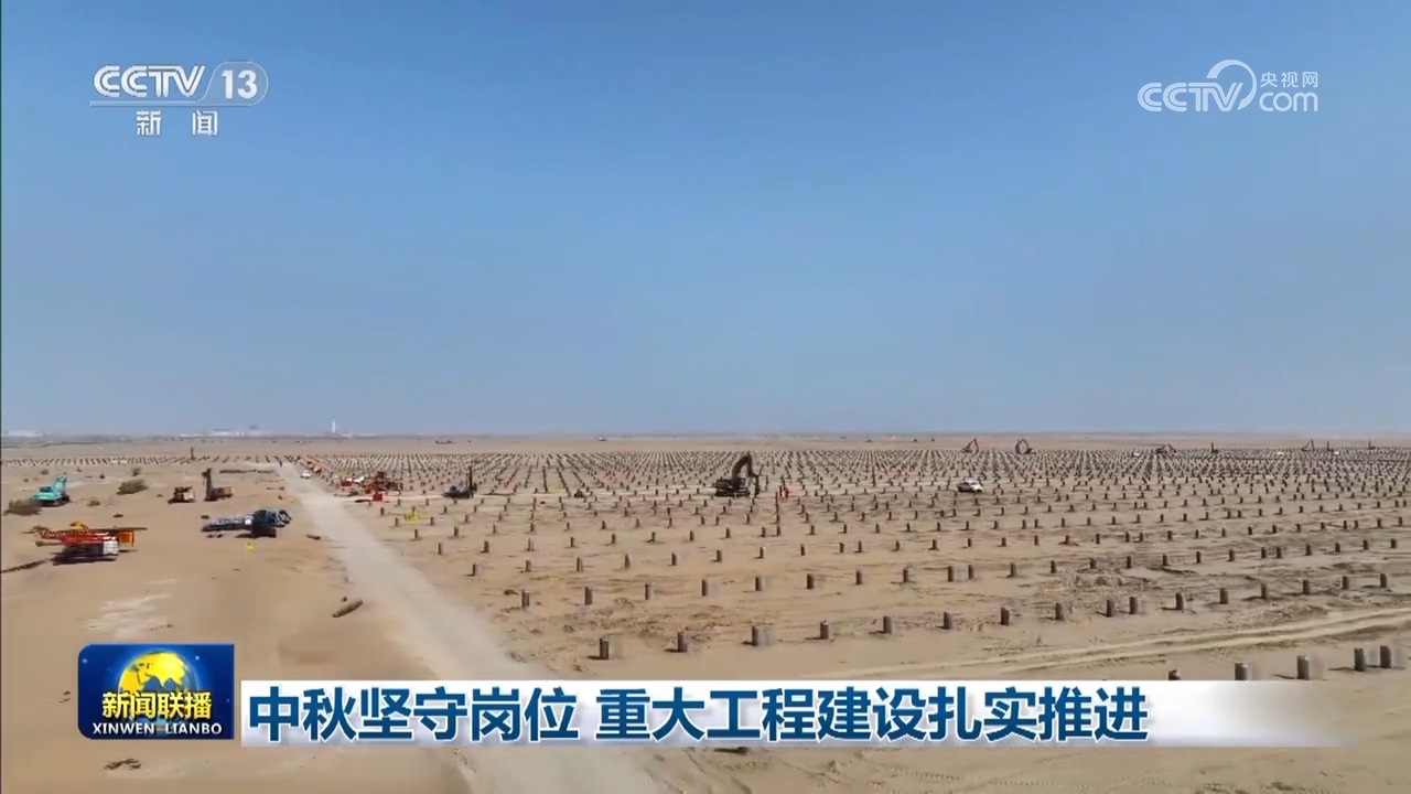 這個中秋假期,在塔克拉瑪干沙漠腹地,上千名施工人員沒有休息,加快建設(shè)萬畝光伏治沙項(xiàng)目,他們將用光伏板鋪滿3285個足球場大小的沙丘,年底建成后,將為周邊化工產(chǎn)業(yè)群提供每年21億度的清潔電能。
