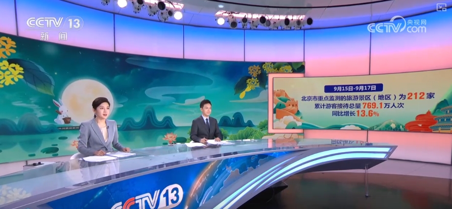 通過(guò)數(shù)據(jù)盤(pán)點(diǎn)各地出游的情況,北京市文旅局統(tǒng)計(jì),9月15日至17日,北京全市重點(diǎn)監(jiān)測(cè)的旅游景區(qū)(地區(qū))為212家,累計(jì)游客接待總量769.1萬(wàn)人次,同比增長(zhǎng)13.6%,比2019年增長(zhǎng)1.4倍。