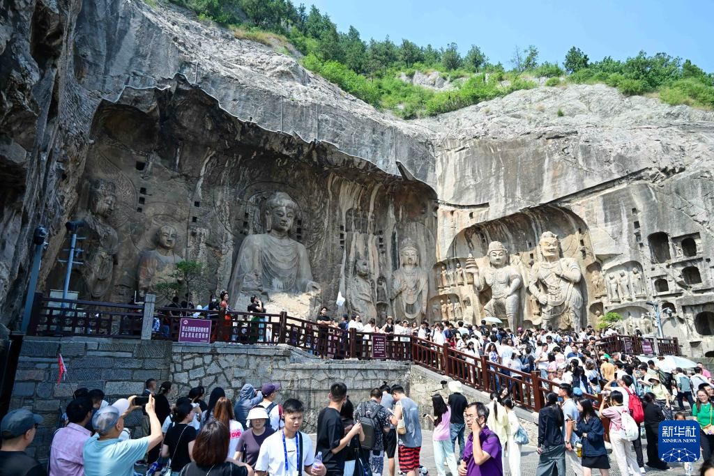 9月16日,游客在河南省洛陽市龍門石窟景區(qū)內(nèi)游覽。