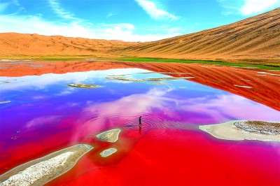 被沙丘環(huán)繞的扎拉特湖。哈斯巴根攝