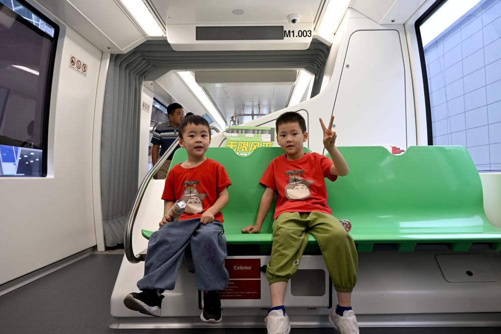 9月21日,在2024世界制造業(yè)大會上,小朋友體驗一款跨座式單軌列車。新華社記者 黃博涵 攝