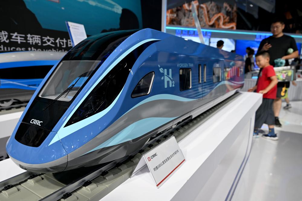 9月21日,在2024世界制造業(yè)大會上,人們參觀氫能源全自動市域列車模型。新華社記者 黃博涵 攝