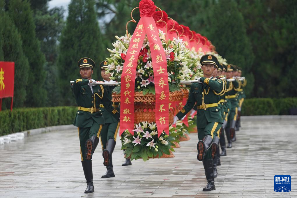 9月25日,禮兵向烈士墓敬獻花籃。新華社記者 周密 攝