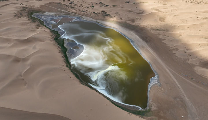 “關(guān)于湖泊成因的推測(cè)也很多,其中多數(shù)推測(cè)認(rèn)為巴丹吉林沙漠西南祁連山的冰雪融化水,通過(guò)地層深處的斷層滲入巴丹吉林沙漠地下,補(bǔ)充了湖泊水?!绷簩殬s說(shuō)。