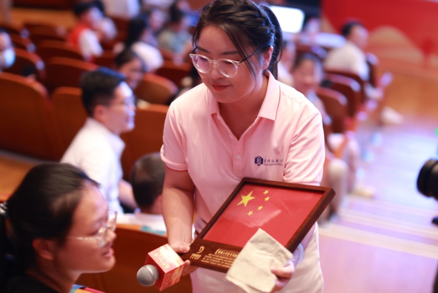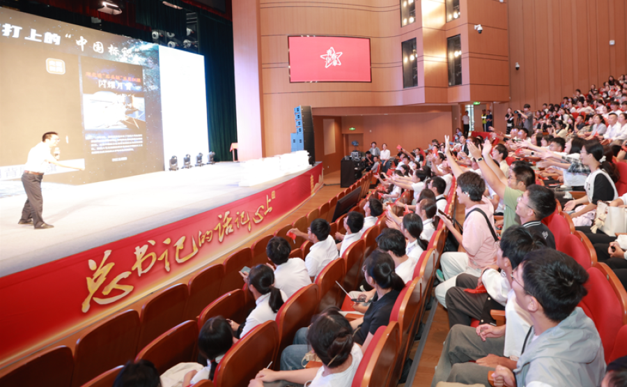 武漢紡織大學(xué)月面國(guó)旗研制團(tuán)隊(duì)的一系列創(chuàng)新成果,生動(dòng)詮釋了“追逐夢(mèng)想、勇于探索、協(xié)同攻堅(jiān)、合作共贏”的探月精神。正是這種迎難而上、勇攀高峰的精神,激勵(lì)著我國(guó)探月工程不斷穩(wěn)步向前,同時(shí)也深深激勵(lì)著現(xiàn)場(chǎng)學(xué)子:創(chuàng)新無止境!唯有奮斗無悔青春!