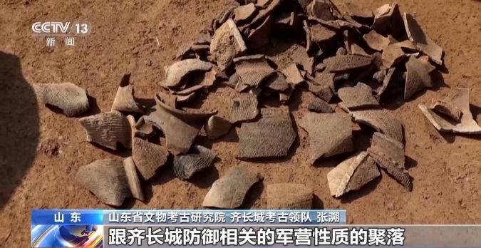 山東省文物考古研究院、齊長城考古領(lǐng)隊張溯:它跟齊長城又有道路相連接,還發(fā)現(xiàn)了一些紅燒土、灶之類的跟生活相關(guān)的遺跡,所以我們推斷它是跟齊長城防御相關(guān)的軍營性質(zhì)的聚落。