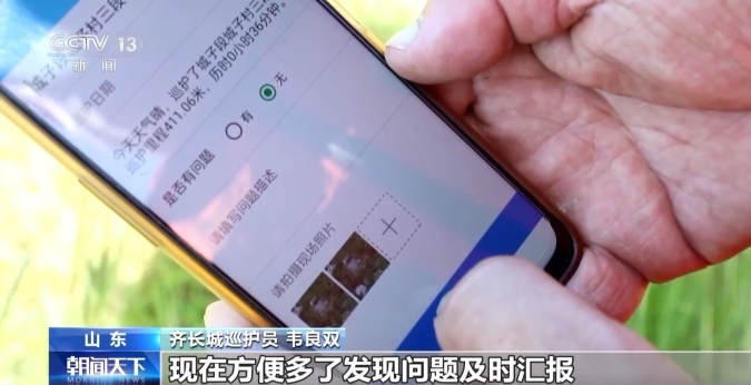 不只新材料,近年來山東出臺《山東省齊長城保護條例》,依據(jù)齊長城在沿線7座城市的長度和巡護任務(wù)量,共設(shè)置了860名公益巡護員,每天一次對齊長城進行巡護。在齊長城淄博段,記者看到,現(xiàn)在巡護員們還有了“智慧幫手”。