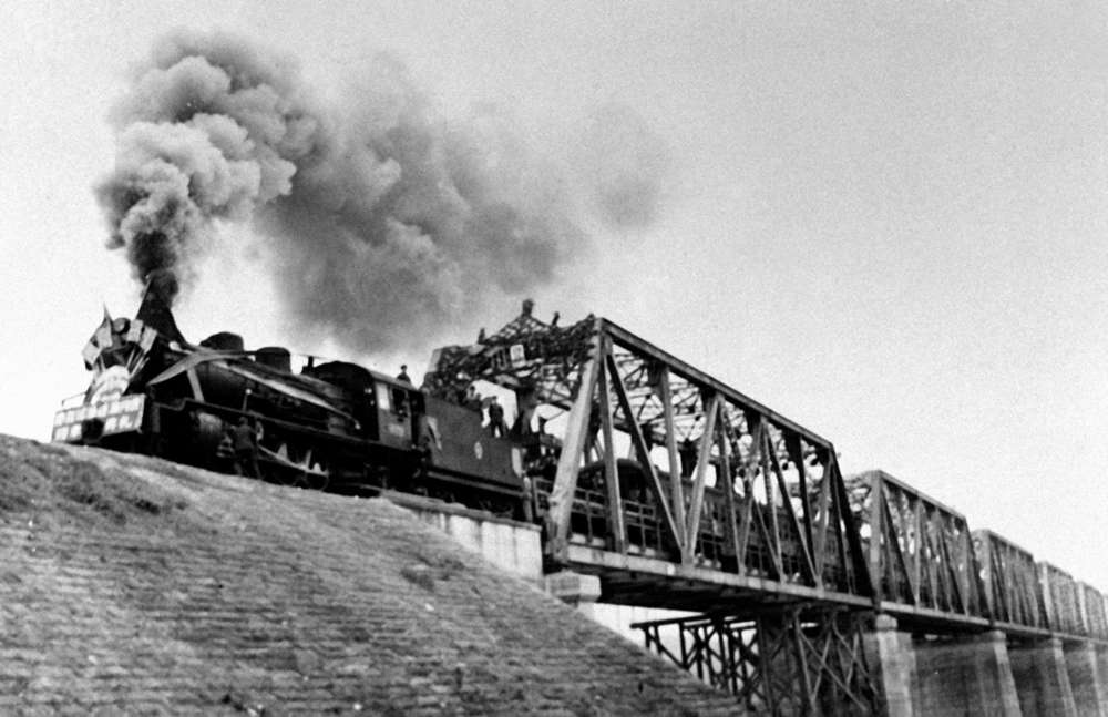 1951年12月,成渝鐵路沱江大橋建成通車后,第一列火車通過大橋。新華社發(fā)