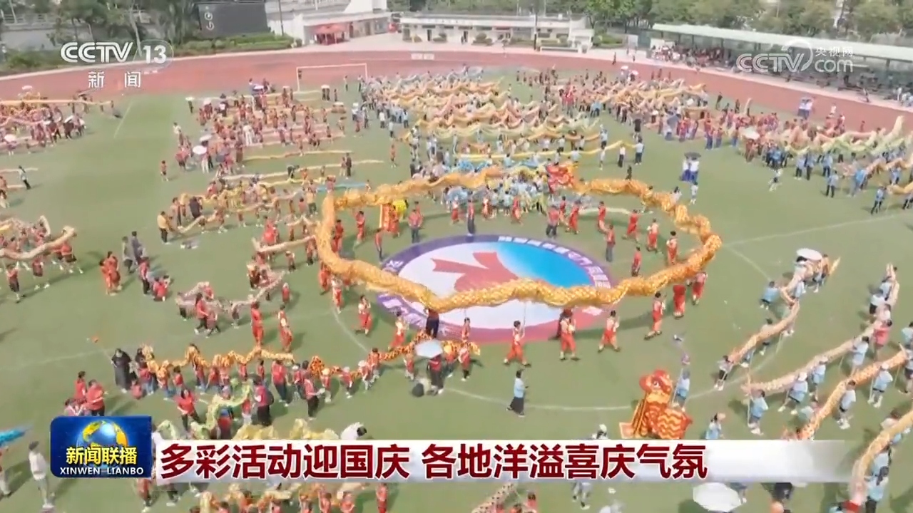 連日來(lái),香港舉行多場(chǎng)活動(dòng)慶祝國(guó)慶。在新界屯門(mén)舉行的活動(dòng)中,近80所學(xué)校的師生們舞動(dòng)75只醒獅和180余條彩龍,展現(xiàn)愛(ài)國(guó)、愛(ài)港精神。在維多利亞港海濱舉行了千人大合唱活動(dòng)。