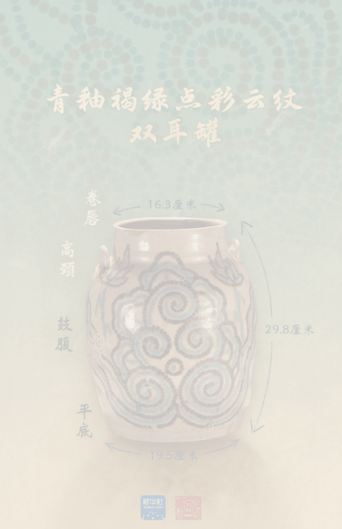 罐身上由褐、綠兩色圓點排列組成的聯(lián)珠紋